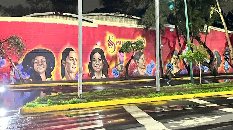 En un mural de 30 metros de largo se hace un homenaje a Ximena Guzmán, quien fuera la secretaria particular de la Jefa de Gobierno, Clara Brugada, quien también aparece en la pintura.