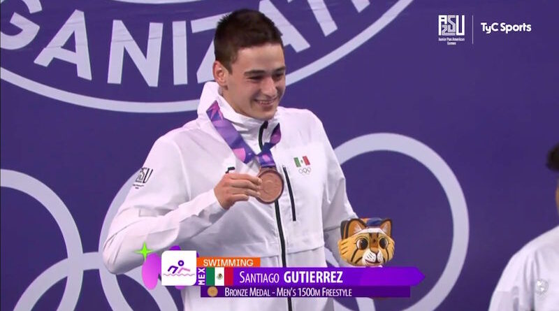 Santiago Gutiérrez, integrante de anv obtuvo la medalla de bronce en los 1,500 metros estilo libre, con tiempo de 15.45.58,  en los Juegos Panamericanos que se desarrollan en Asunción, Paraguay.