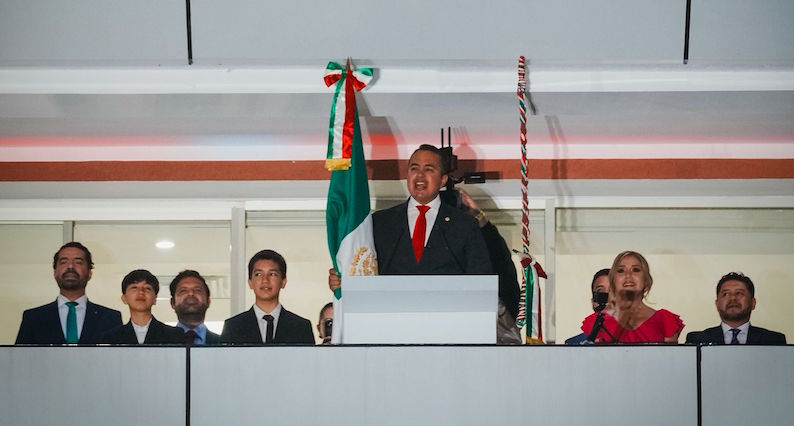 A las 23:00 horas, acompañado por la escolta de la Policía Auxiliar y al ritmo solemne de una banda de guerra, el edil recibió el lábaro patrio y salió al balcón para dar el tradicional Grito. Las campanas resonaron sobre una multitud eufórica que coreaba cada uno de los “¡Viva!” con emoción contagiosa.